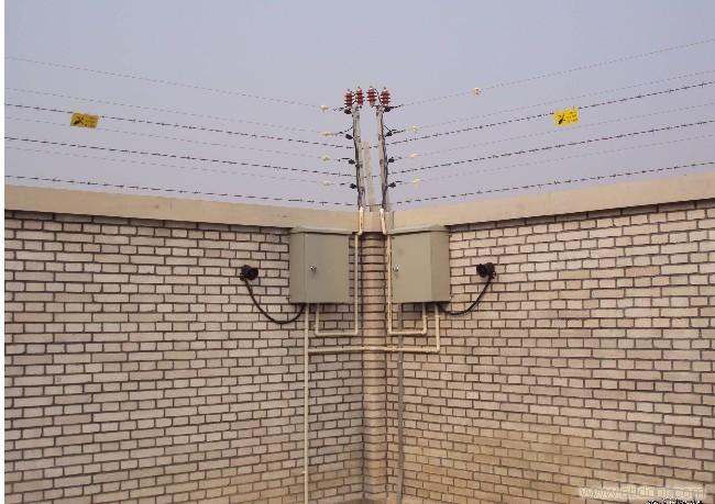 拐角采用终端杆(非90°安装时,应从两个围栏方向各安装一根终端杆),分区处应从两个方向安装绝缘子。